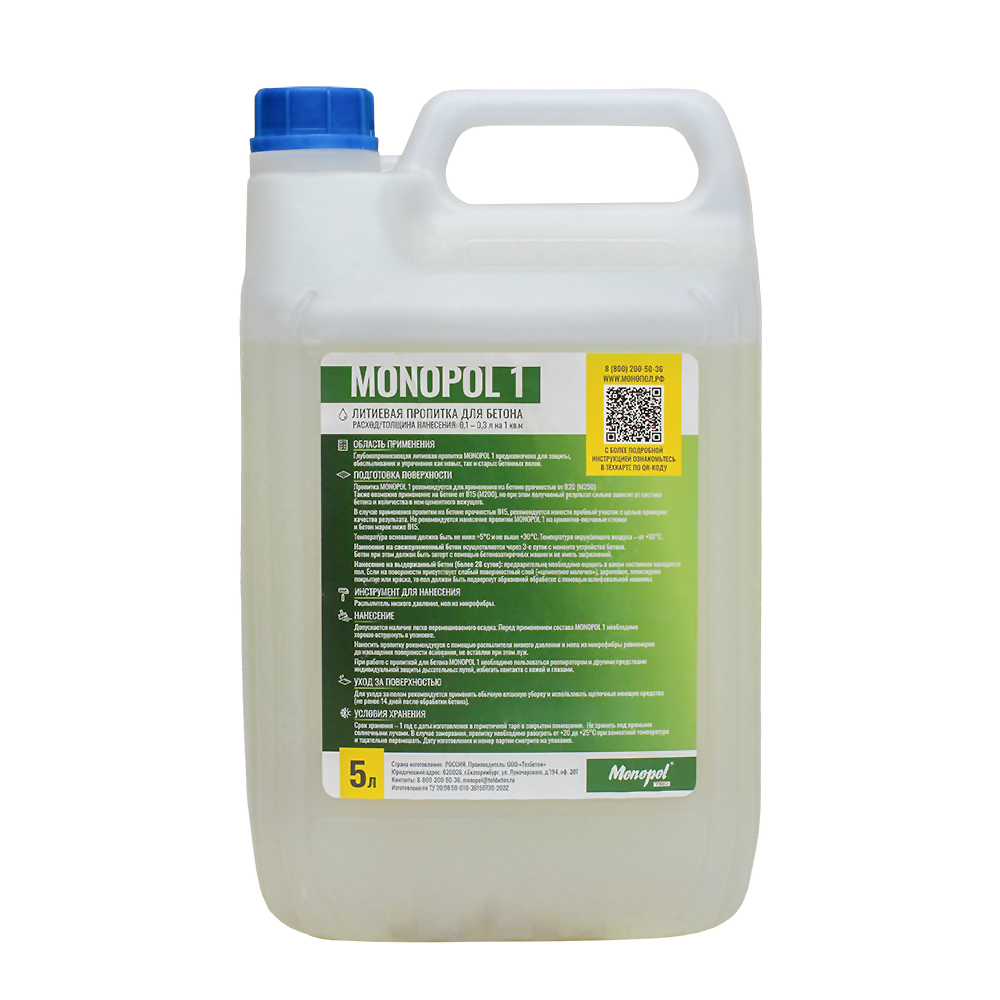 Monopol 1 (жидкий упрочнитель) - химически активная жидкая литиевая пропитка на основе силиката лития. Не горючая, без запаха.
