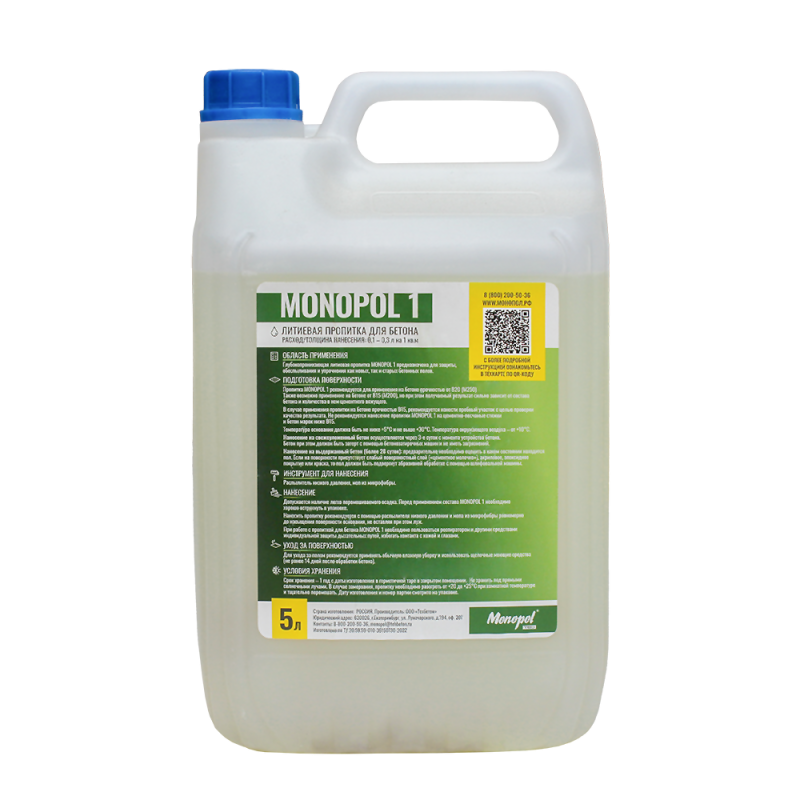 Литиевая пропитка Monopol 1 предназначена для защиты, обеспыливания и упрочнения как новых, так и старых бетонных полов: