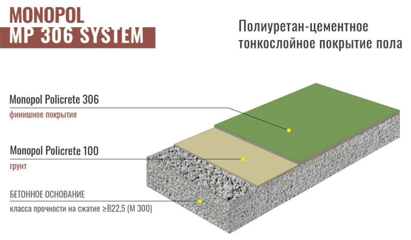 Материалы входящие в систему: Monopol Policrete 100, Monopol Policrete 306, Monopol PU 18W